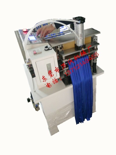 柜式切帶機特點:a采用高性能微電腦中文控制系統,高靈敏度觸摸式操作面板,液晶顯示屏,機型設計符合人體工學原理,操作簡便、耐用。b動力采用高扭力步進電機送料,精度高。切帶長度、數量、速度可自由設定。c切刀可附加熱裝置,能將編織帶切口加熱固結,不產生毛邊,精度高,損耗少。d 有反復切斷功能。e獨特的糾錯報警功能,確保操作準確無誤。